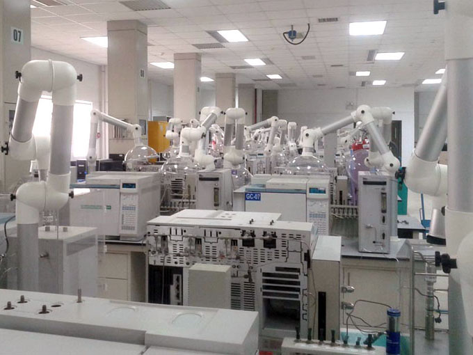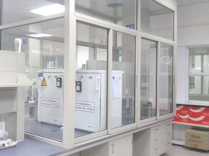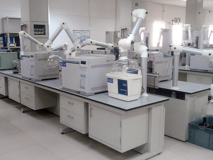 2、儀器臺部分:儀器臺對承重性、穩定性、抗外干擾、電控要求很高,氣體配送嚴格、安全、可靠、方便、易管理。承重要達到500Kg以上,用于儀器分析實驗室。